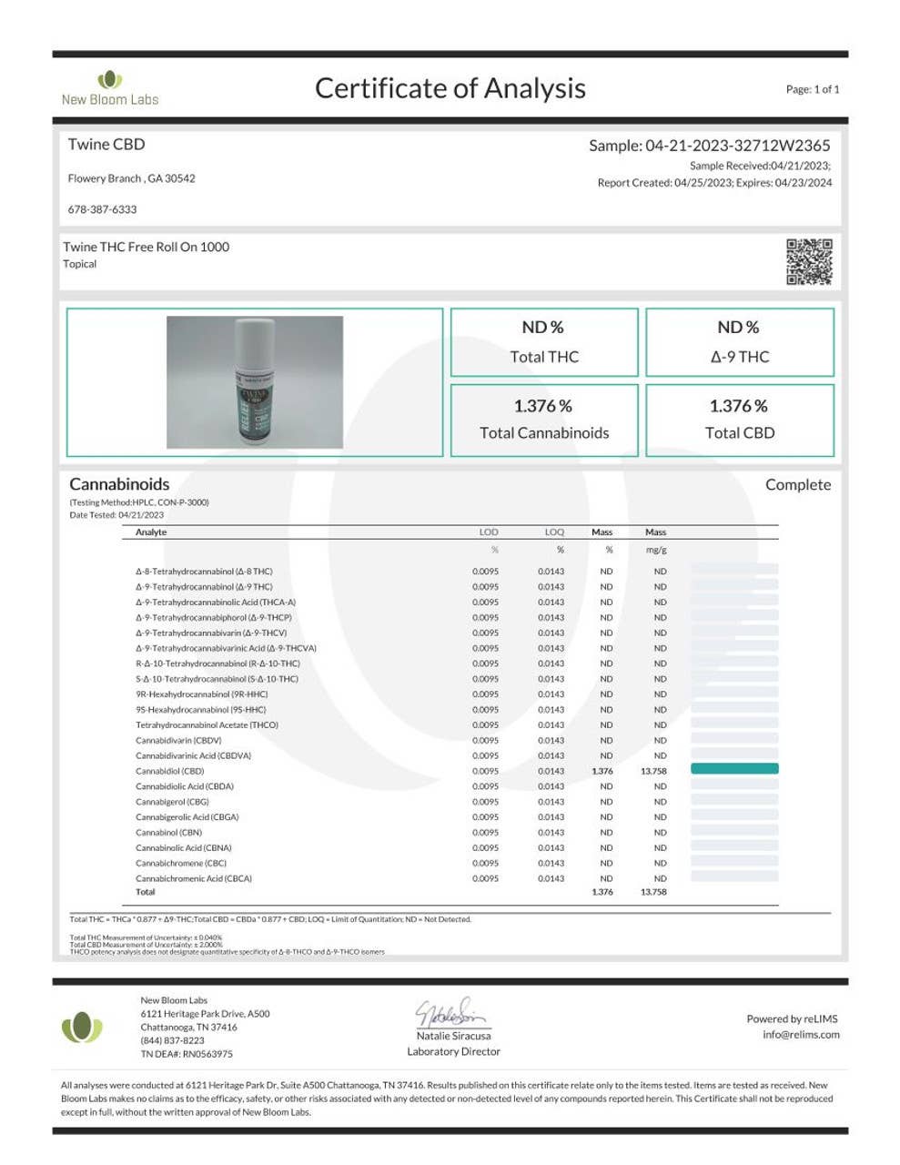 Twine CBD Relief Roller – 1000mg CBD Isolate (90ml)