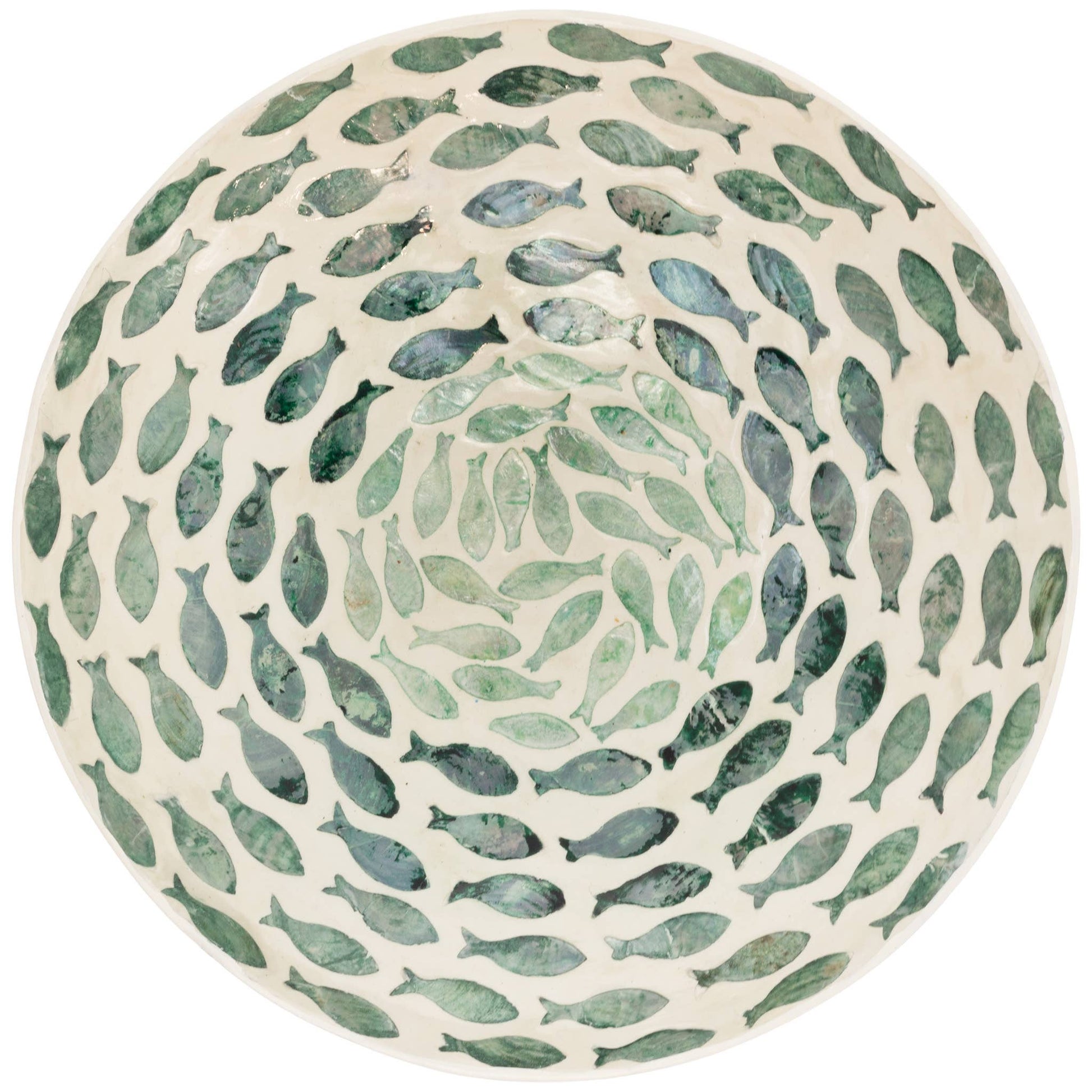 11.75" Dia Bowl Mother of Pearl Swirling Fish - Coastal