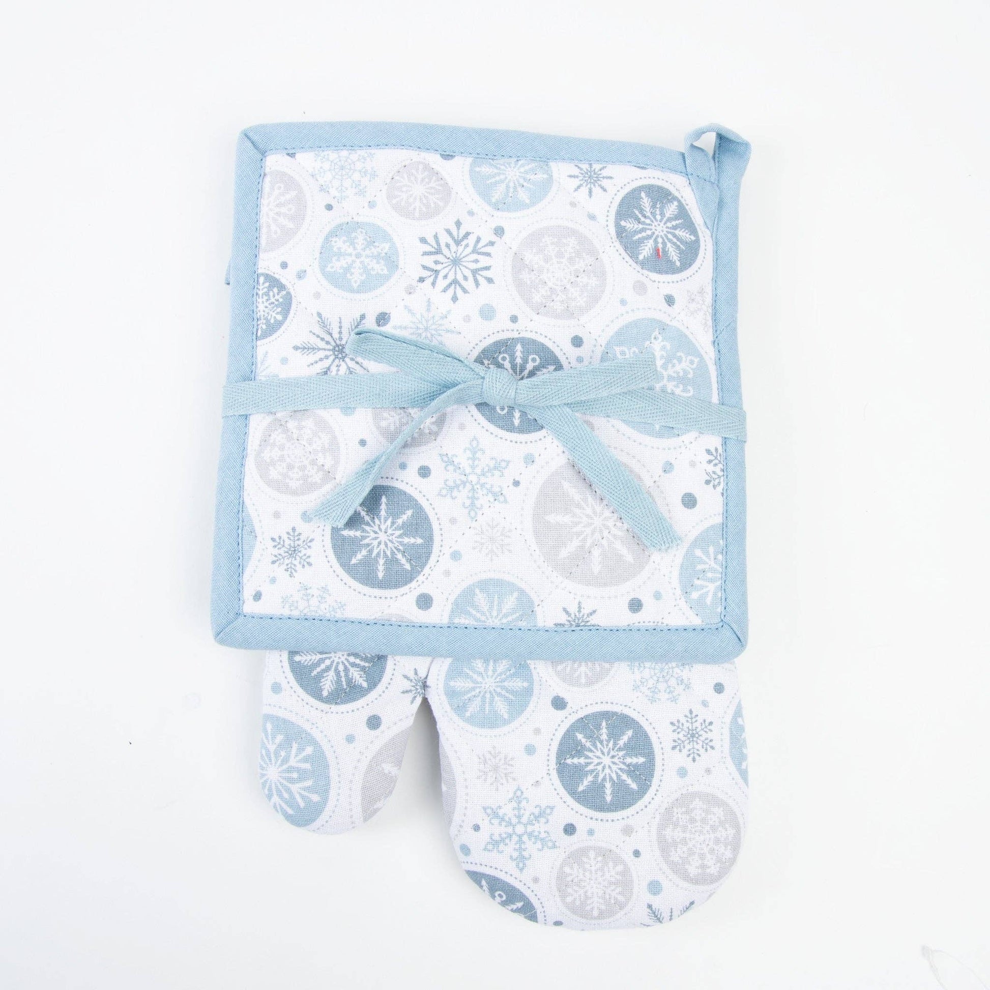 2 Pc Holiday Christmas Snowflake Oven Mitt & Pot Holder Set