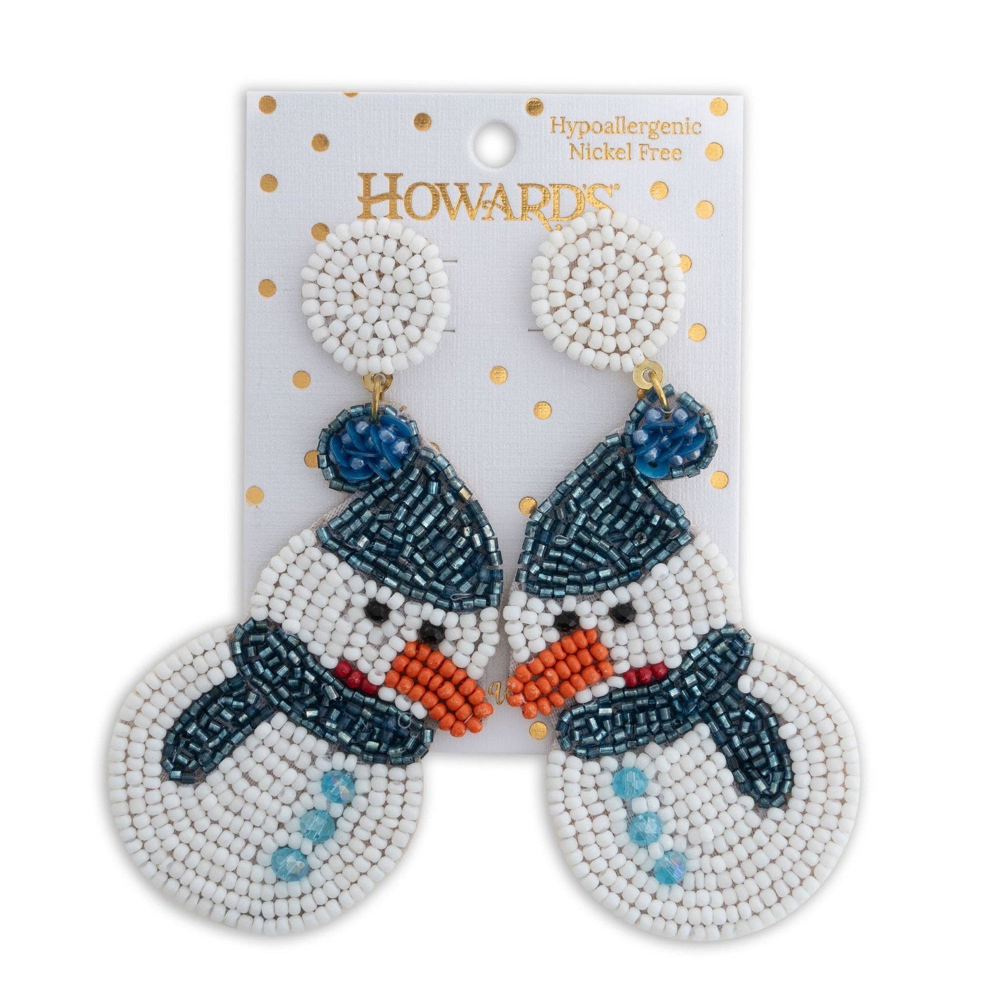 Fun and festive! Featuring beautifully detailed snowmen made of vibrant beads with a post back closure the Holiday Seed Bead Snowman Earrings add a festive touch to any look.