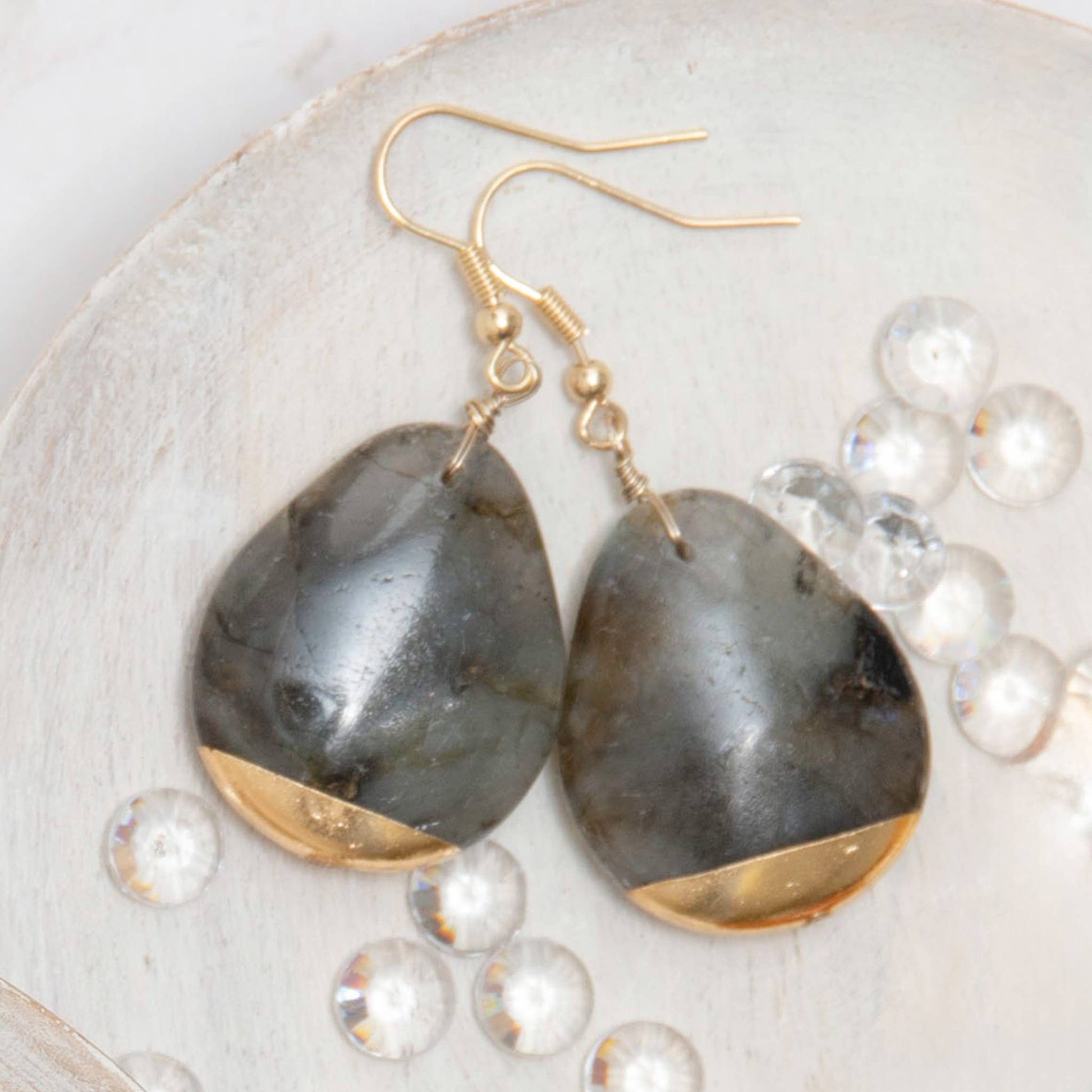 Turn heads with the Nalani Teardrop Stone Earrings. Featuring genuine stones in a lovely teardrop shape with a gold dip design, these earrings are the perfect finishing touch to any outfit.