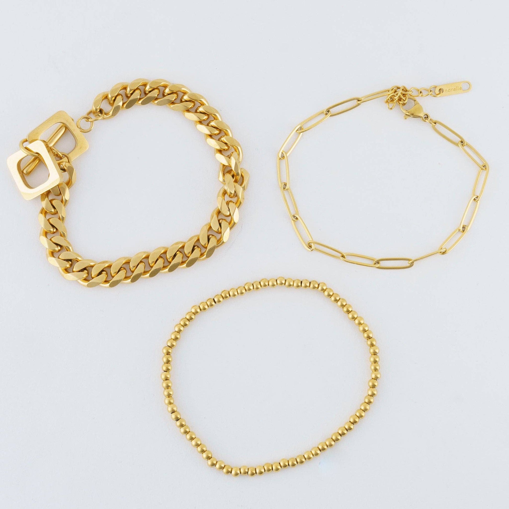 Narelle Waterproof Curb Chain Bracelet Set: Yellow Gold