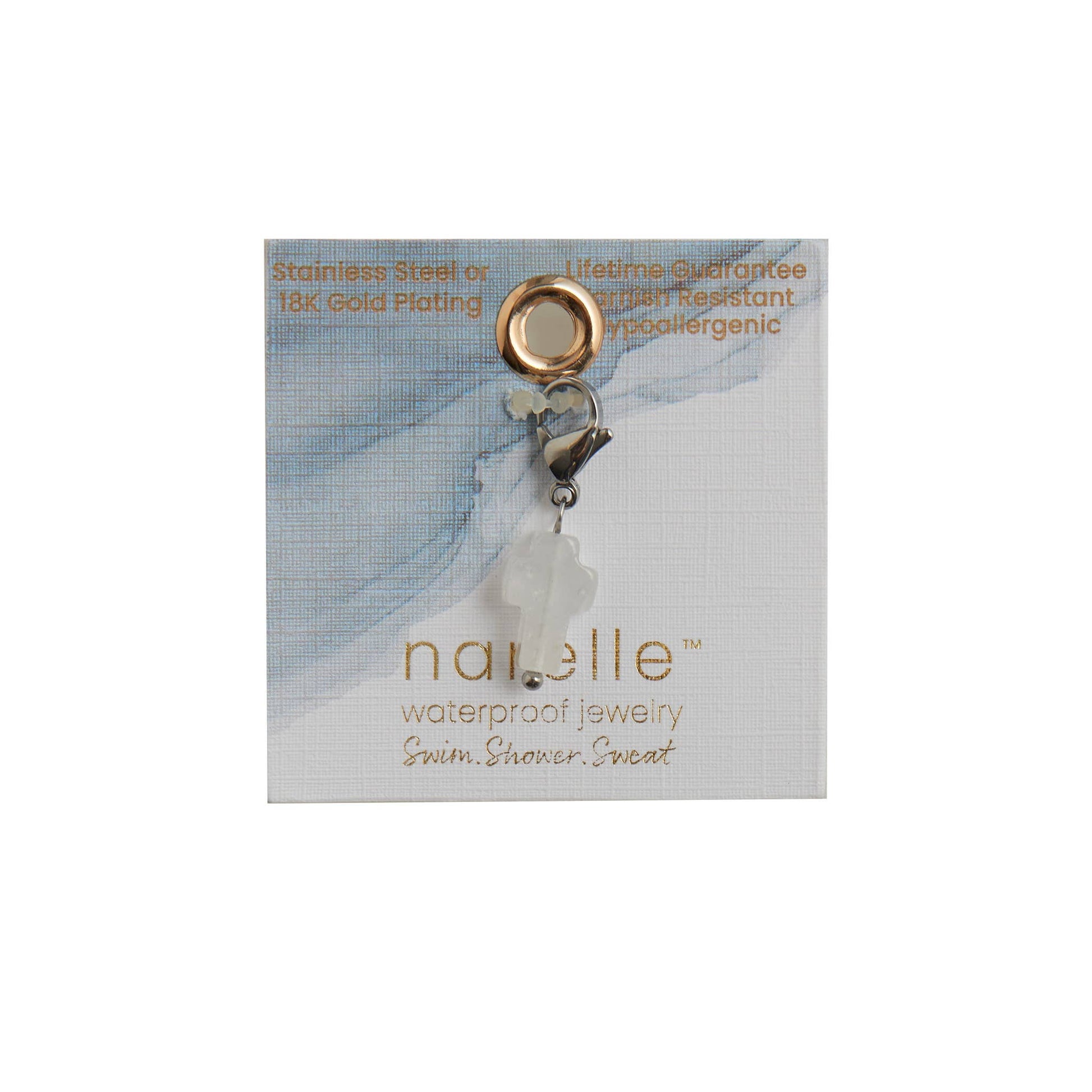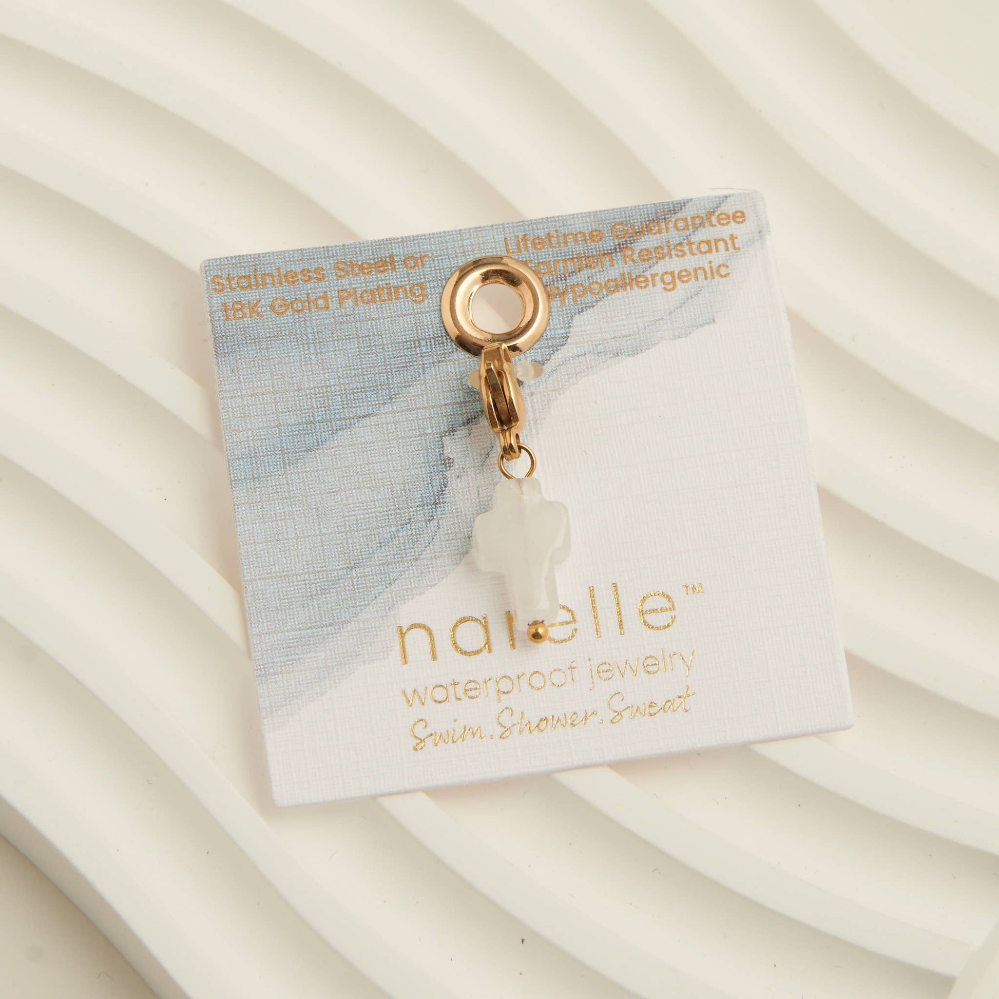 Elegant and meaningful, the Narelle Cross Charm brings timeless symbolism to your favorite jewelry pieces. Designed with a refined silhouette and secured with a lobster clasp, this charm is easy to add or remove from chains, bracelets, or hoops. Available in polished stainless steel or radiant 18K gold plating, each piece is finished with our signature PVD coating—making it waterproof, tarnish-resistant, and perfect for everyday wear. A classic charm with modern durability and spiritual significance.