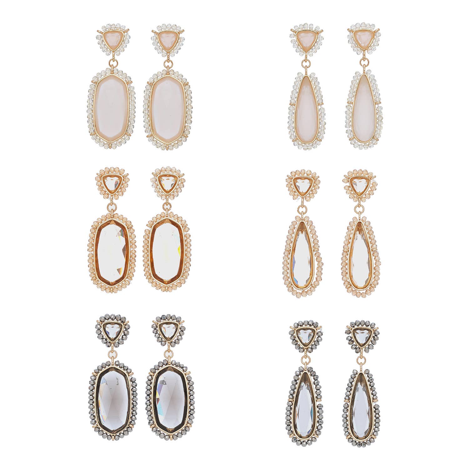 You're sure to stand out wearing any of these earrings. Crafted out of polished silver or gold-tone metal, this drop earring assortment are structured in a geometrical silhouettes with a large gemstone in the center for a look that'll elevate any ensemble.