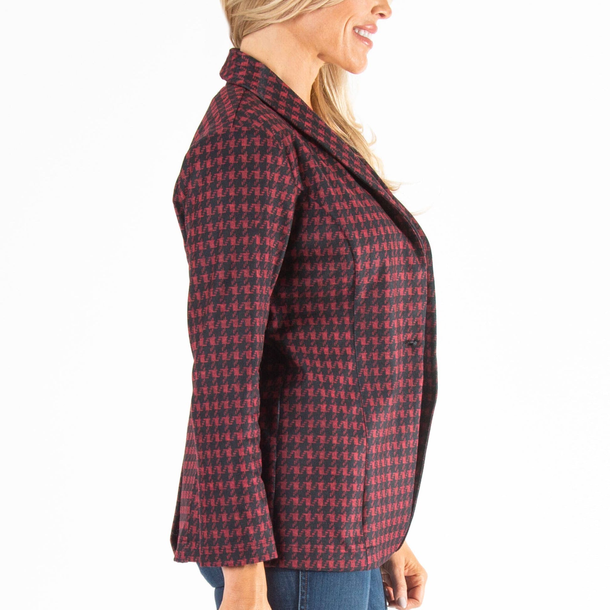 Sale - Nadia Long Sleeve Houndstooth Stretch Blazer: Ruby Houndstooth / S/M
