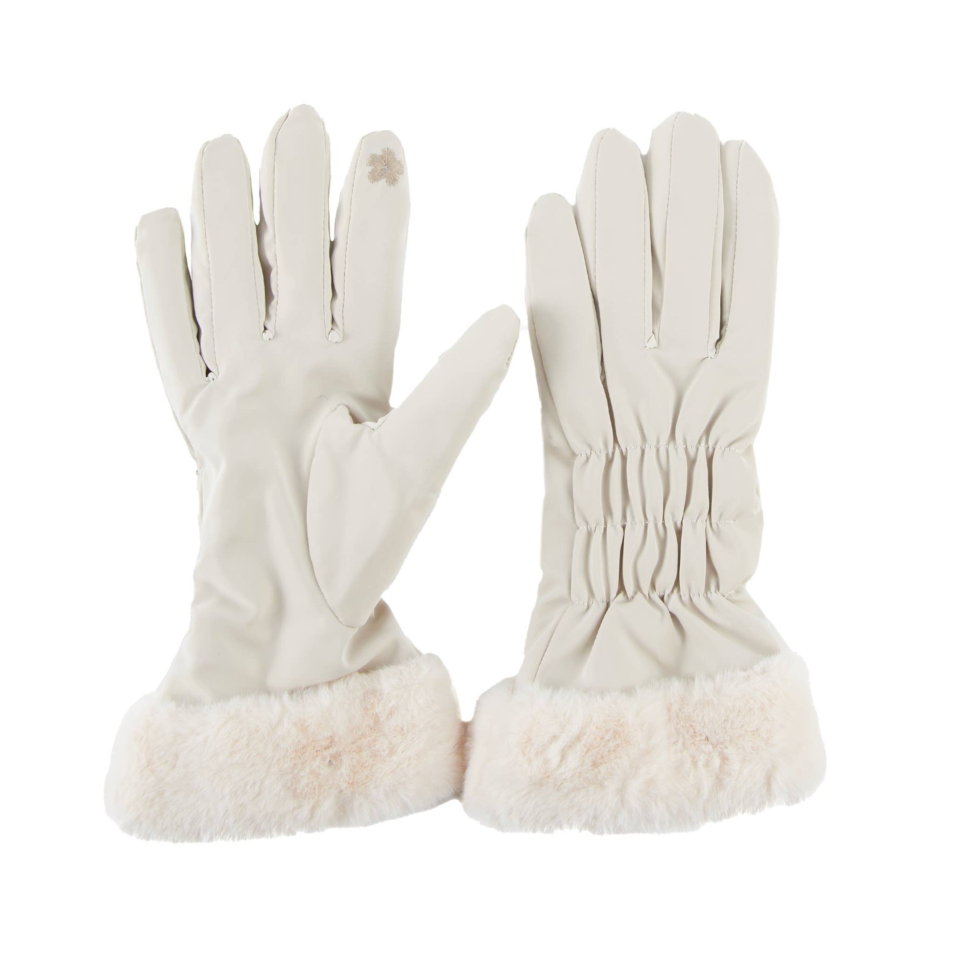 Spencer Faux Fur Cuff Texting Winter Gloves: Cream
